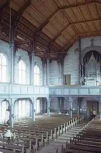 L'église a une capacité de 1500 places assises[2]. Elle est de style néogothique et son intérieur est en bois brut.