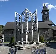 Pour fêter le passage à l'an 2000 et célébrer l’année sainte, la paroisse a fondé en l'an 2000 la « Fondation du Carillon pour la Paix »[4] pour promouvoir la Paix dans le monde, au moyen de la formation et de l’éducation, un des éléments essentiels de la dignité de la condition humaine. Elle a fait édifier devant l'église (place du Carillon) un carillon suisse automatique monumental de 23 cloches + 2 cloches du clocher de l'église, qui rythme musicalement les heures de la journée en résonnant dans la montagne environnante, à titre de symbole Humaniste Utopiste Chrétien social international « de Paix, de Solidarité, et d'Universalité ». Cette œuvre d'art chrétien en acier inoxydable est réalisée par le sculpteur genevois André Bucher avec :