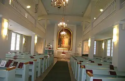 Le retable représentant l'apôtre Thomas est peint par Martta Helminen en 1927. L'orgue actuel à 15 jeux est fabriqué en 1973 par le facteur d'orgue Hans Heinrich[1].