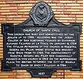 En janvier 1724 un collège jésuite, « San Ildefonso », ouvre ses portes ; il restera école paroissiale primaire. En 1743 la statue de Notre-Dame du Pilar, apportée du Mexique, y est solennellement installée. La dévotion pour la Vierge du Pilier attire les pèlerins : un culte s’y développe. Une confrérie Notre-Dame du Pilar est créée. Notre-Dame du Pilar deviendra la patronne de Santa Cruz au milieu du XIXe siècle, y remplaçant Saint Stanislas Kostka.