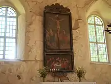 Le mobilier de l'église comprend des sculptures médiévales et des fonts baptismaux, une chaire et un retable. La partie supérieure du retable représente la Crucifixion et la partie inférieure représente la Sainte Communion. Le retable a été offert par Johan Lundvik, l'intendant de l'Académie de Turku, en 1759. Les bancs et la chaire de l'église ont été réalisés dans le cadre de la rénovation de 1866-1867. L'église abrite aussi une ancienne chaire du XVIIe siècle[2].