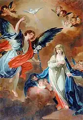 - La Vierge du Mont-Carmel donnant le scapulaire à saint Simon Stock[11],[9].