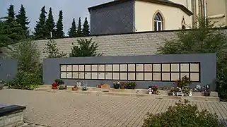 L'église de l'Assomption est entourée de son cimetière. Le colombarium, avec les urnes funéraires, se trouve dans la partie méridionale du cimetière.