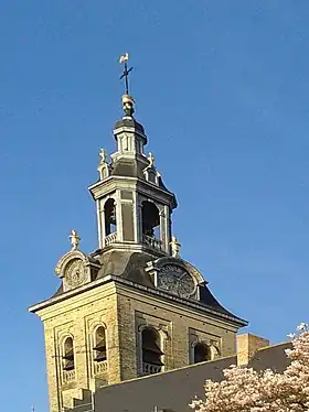 Mais le plus beau carillon fut commandé en 1727 par l'abbé Jérôme de Waerseghere à André van den Gheyn pour la nouvelle tour de l'église[6]. Vingt huit cloches y résonnaient au début, et furent complétées deux ans plus tard par le même fondeur pour peser 20 900 livres[2]. L'horloger Charles Alexandre Lion ajouta en 1733 un tambour au carillon, qui se fit entendre pour la première fois, au complet, à la kermesse de Louvain, au mois d'août 1735[2].