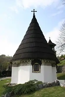 Vue de l'église de la Dormition-de-la-Mère-de-Dieu de Dobri Potok. | |