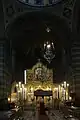 L'intérieur est richement décorée selon les canons byzantins, orné entièrement par de peintures à l'huile imitant la mosaïque. Dans le presbytère se trouvent trois autels. La grande lampe d'argent qui pend à l'entrée est un cadeau du tsar Paul Ier.