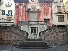 L'église est précédée d'un escalier à double rampe en piperno[3].