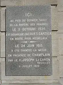 L'église est construite sur le bord de la rivière des Prairies. Une plaque rappelle le passage en ce lieu de Jacques Cartier, en 1535, et la première messe dite à Montréal, en présence de Samuel de Champlain, en 1615.
