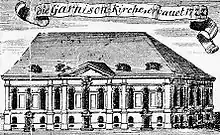En 1701-1703, la première église de garnison du Brandebourg est construite sous le roi Frédéric Ier par le maître d'œuvre Martin Grünberg. Elle est détruite par l'explosion de la tour poudrière de Berlin (de) le 12 août 1720.