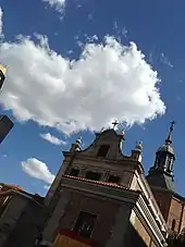 L'église a été conçue en forme de croix latine par l'architecte Juan Gómez de Mora en 1615, mais la construction a commencé en 1671, un demi-siècle après la fondation du monastère, en raison de la perte de la grâce du favori, et n'a été achevée qu'en 1744.