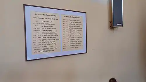 Voir la liste des pasteurs ayant officié à Gundershoffen, sur Gundershoffen, Eberbach, Griesbach et ses hameaux. Le temps passe... les souvenirs restent, Éditions Carré Blanc. Collection Mémoires de vie, p.67.