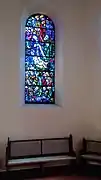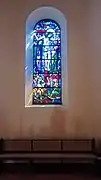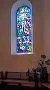 Les vitraux, de Ernest Werle[8], sont figuratifs dans le chœur et symboliques dans la nef[9].