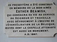 A l’époque Esther Beamish pensait plutôt rejoindre Miss de Broen qui travaillait parmi les pauvres de Paris, en particulier à Belleville (il s’agissait des premiers pas de la Mission to the working-men of Paris, devenue Mission Populaire Evangélique de France, fondée par Robert Whitaker McAll après qu’il eut visité Paris et certains de ses faubourgs, très affectés par les combats de la Commune). Mais après avoir pris conseil, elle renonça à ce projet et résolut de rejoindre Miss Perceval à Spa. Esther Beamih était la fille de Henry Hamilton Beamish, recteur de Lillingston Dayrell[28] en Angleterre.
