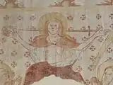 Les murs du temple, de style roman, portent un ensemble de fresques datant du début du XVe siècle. Le mur nord retrace la Création et les tribulations de l'homme, le mur sud est réservé au Christ, sauveur de l'humanité. Dans le chœur, au-dessus de l'arc triomphal, ne subsiste que le registre inférieur.