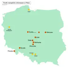 - The Lesser Polish Reformed Protestants were organised in four congregations. Cf. Małgorzata Kośka: "Akta Gmin Kościoła Ewangelickiego Augsburskiego i Helweckiego Wyznania 1786 — 1939" « https://web.archive.org/web/20110817004429/http://www.agad.archiwa.gov.pl/pomoce/AKEAH427.xml »(Archive.org • Wikiwix • Archive.is • Google • Que faire ?), , Archiwum Główne Akt Dawnych w Warszawie (AGAD; Central Archives of Historical Records in Warsaw) « https://web.archive.org/web/20120417201916/http://www.agad.archiwa.gov.pl/ »(Archive.org • Wikiwix • Archive.is • Google • Que faire ?), ; retrieved on 6 May 2012.