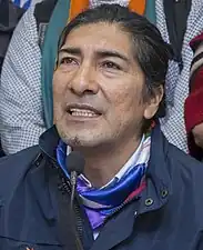 Titulaire d'un diplôme d'avocat et d'une maitrise en droit pénal et criminologie, spécialisé en droit des autochtones, Yaku Pérez est perçu comme un intellectuel de gauche ayant mis à profit son ascendance indigène pour grandir en politique[45]. Devenu représentant syndicaliste, il participe aux manifestations contre Rafael Correa puis devient l'un des meneurs de celles anti-austérité organisée contre Lenín Moreno en octobre 2019, avant de manquer de très peu de se qualifier pour le second tour de l'élection présidentielle de 2021, créant la surprise. Il se présente comme en 2021 sur un programme insistant en particulier sur la protection de l'environnement. Militant écologiste engagé dans les luttes pour le droit à l’eau, opposant à un modèle économique reposant sur l’extractivisme, il promeut les énergies renouvelables, la justice sociale et l'implication des organisations citoyennes dans la lutte contre la criminalité. Sa campagne s'axe sur une tournée continue dans les principales villes du pays, accompagnée d'une forte présence sur Tiktok, Instagram et Facebook, reprenant ainsi la méthode de sa précédente candidature[45].