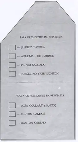 | Juscelino Kubitschek – Parti social démocratique | ||||||||||||||