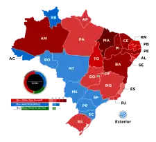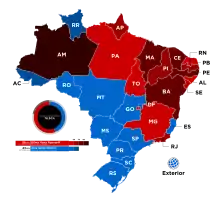 Dilma Rousseff arrive en tête dans dix-huit États, principalement dans le Nord et l'Est du pays. Elle obtient la majorité absolue dans dix d'entre eux[7] et réalise son meilleur score (70,65 %) dans l'État de Maranhão[7]. En revanche, elle obtient son plus mauvais résultat (23,92 %) dans l'État d'Acre[7].