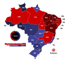 Lula remporte le second tour avec 50,90 % des suffrages exprimés, soit l'écart de voix le plus serré pour un second tour d'une élection présidentielle depuis la fin de la Dictature militaire en 1985. Malgré une victoire plus compliquée qu'attendue, il parvient ainsi à décrocher la présidence du pays pour la troisième fois après son élection en 2002 et 2006[51].