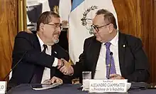 L'élection présidentielle de juin 2019 voit la victoire au second tour du candidat du parti Vamos, Alejandro Giammattei, sur Sandra Torres, candidate de l'Union nationale de l'espérance (UNE). Le scrutin intervient dans un contexte de perte de confiance de la population envers sa classe politique, jugée incapable de lutter contre la corruption, la criminalité et la misère que connaît le pays[1],[2].