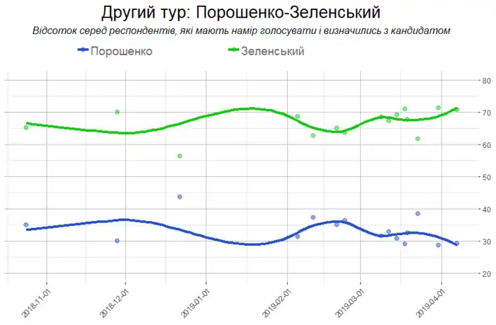 Sans surprise, Volodymyr Zelensky remporte le second tour, avec 73,2 % des voix. Petro Porochenko reconnaît sa défaite dès la fin du scrutin. La transition présidentielle se traduit cependant par des dissensions entre le président élu et la majorité parlementaire sortante.