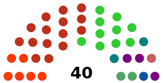 | 40 sièges du congrès étatique (Majorité absolue : 21 sièges) | ||||||||||||||