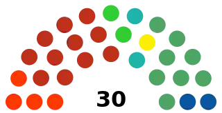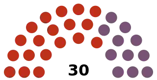 | 30 sièges du congrès étatique (Majorité absolue : 16 sièges) | ||||||||||||||