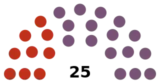 | 25 sièges du congrès étatique (Majorité absolue : 13 sièges) | ||||||||||||||