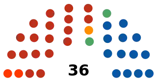 | 36 sièges du congrès étatique (Majorité absolue : 19 sièges) | ||||||||||||||