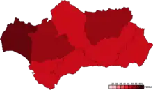 | Parti socialiste ouvrier espagnol d'Andalousie (PSOE-A) | 1 368 576 | 49,61 | 62 | |||||