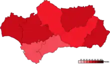 | Parti socialiste ouvrier espagnol d'Andalousie (PSOE-A) | 1 903 160 | 44,06 | 52 | |||||