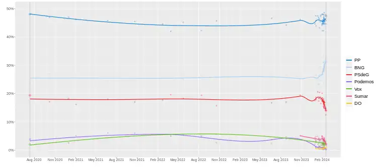 | Institut | Date | PP | BNG | PSOE | GeC | SMR | Vox | Cs | POD | DO |