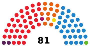 | Année | Participation | Hémicycle | Parti en tête | Score | Sièges | Président | |||