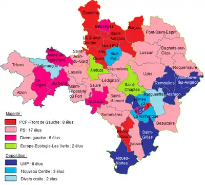 Étiquettes politiques des conseillers généraux du Gard à la suite des cantonales de 2011
