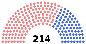 | Total sièges | 7 | 10 | 10 | 86 | 65 | 13 | 18 | 4 | 1 | 214 | |||