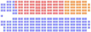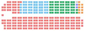 | Total sièges : | 32 | 26 | 14 | 14 | 99 | 75 | 10 | 11 | 4 | 7 | 2 | 1 | 295 | ||