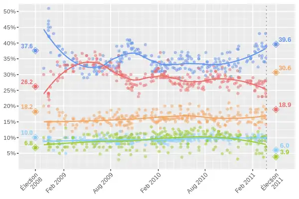 | 2008 | Dissol. | 2011 | % diff. | % sièges | # | # diff. | % | pp diff. | ||||
