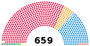 | 659 sièges de la Chambre des communes (Majorité absolue : 330 sièges) | ||||||||||||||