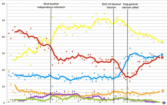 | 29.09- 01.10.2014 | Panelbase | 34 % | 32 % | 18 % | 5 % | 6 % | 5 % | 2 % | |