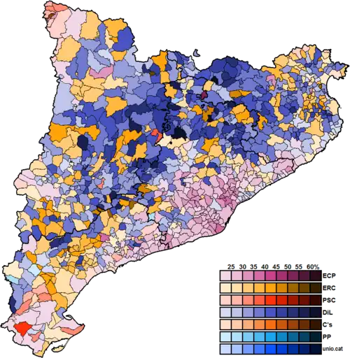 | Union démocratique de Catalogne (UDC) | 6 324 | 1,69 | 0 | |||