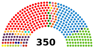 Lors des élections générales anticipées du 28 avril 2019, le Parti socialiste ouvrier espagnol (PSOE) de Pedro Sánchez s'impose avec 123 députés. Il est suivi par le Parti populaire (PP) de Pablo Casado, qui réalise le pire résultat de son histoire avec seulement 66 sièges, soit une division par deux de son groupe parlementaire. La troisième place revient au parti Ciudadanos d'Albert Rivera, qui remporte 57 élus et passe devant la coalition Unidas Podemos (UP) de Pablo Iglesias, qui n'obtient que 42 députés, soit la perte d'une trentaine de sièges. La cinquième place revient à Vox de Santiago Abascal, qui devient le premier parti d'extrême droite à siéger au Parlement espagnol depuis la mort de Francisco Franco avec 24 sièges. Les sièges restants reviennent aux partis nationalistes territoriaux, principalement la Gauche républicaine de Catalogne (ERC), Ensemble pour la Catalogne (JxCat) et le Parti nationaliste basque (EAJ/PNV).