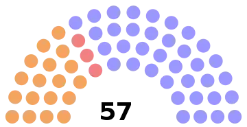 | 57 sièges de l'Assemblée législative (Majorité absolue : 29 sièges) | ||||||||||||||