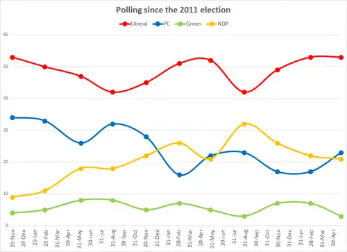 | Libéral | Wade MacLauchlan | 27 | 22 | 20 | 18 | -4 | 33 481 | 40,83 % | -10,55 | |