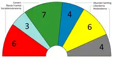 | Sociaux-démocrates d'Åland | 2 404 | +891 | 18,0 | +6,2 | 6 | +3 | |