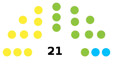 | 21 sièges des États d'Aruba (majorité absolue : 11 sièges) | ||||||||||||||