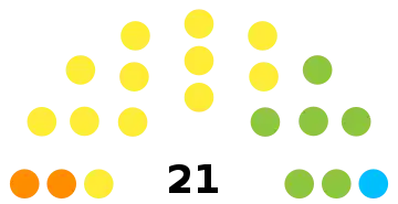 | 21 sièges des États d'Aruba (majorité absolue : 11 sièges) | ||||||||||||||
