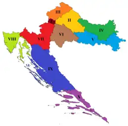 Dix d'entre elles — comptant 14 sièges chacune — sont basées sur les limites des vingt comitats du pays et la capitale Zagreb, ajustées de manière à obtenir une répartition relativement uniforme des électeurs croates, un différentiel de plus ou moins 5 % étant tolérée d'une circonscription à l'autre. Trois autres sièges sont réservés à la diaspora croate, qui forme une onzième circonscription. Les huit sièges restants sont quant à eux réservés aux 22 minorités ethniques nationales reconnues par l'État croate, et sont à pourvoir au scrutin majoritaire dans une douzième circonscription qui se superpose aux dix premières et recouvre l'ensemble du pays[11].