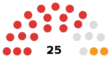 | 25 sièges de l'Assemblée législative (Majorité absolue : 13 sièges) | ||||||||||||||