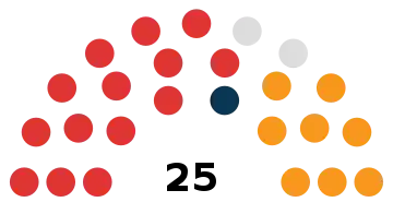 | 25 sièges de l'Assemblée législative (Majorité absolue : 13 sièges) | ||||||||||||||