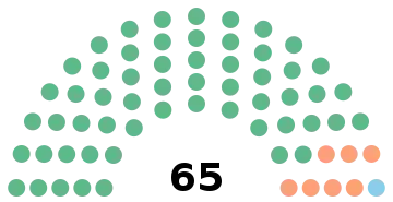 | 65 sièges de l'Assemblée nationale (Majorité absolue : 33 sièges) | ||||||||||||||